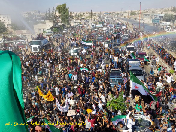 ما زالت المظاهرات سبيلاً للوصول إلى الهدف، ترى ذلك، على الأقل، من خلال الوحدة بين أطياف الثورة نفسها، بمختلف مسمياتها وتبعيتها، الكل متفق على المشاعر التي ولدتها عودة المظاهرات في الجمعتين السابقتين، ومنتظر أيضاً بحالة من القلق والأمنيات بالمشاركة، مظاهرات الجمعة القادمة، يتناقل تسميتها التي اعتاد السوريون على إطلاقها كوسم للجمعة القادمة، في الوقت الذي يعدها موالون للأسد “حالة ارتباك” تعيشها المناطق المحررة “بعد أن أفلست الجماعات الإرهابية من الانتصار بالقوة فعادوا للتظاهر”، وإن أيقنا بصحة قولهم، فلماذا هم مهتمون بها وبمتابعة أخبارها؟ والسؤال الأهم لماذا هم خائفون من اشتعالها مرة أخرى، حتى في المناطق التي يسيطرون عليها؟