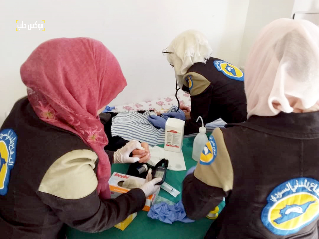 “كنت أستجيب للحالات الطارئة، أحياناً أقوم بدور القابلة، وفي بعض الأوقات أقوم بتمريض النساء وتركيب القساطر وإعطاء الحقن، وفي العام 2014 انضممت إلى مركز الدفاع المدني الذي تأسس في الحي بعد أن اطلعت على ما يقدمه من أعمال إنسانية، كنت أساهم بتركيب السيروم وتخطيط القلب وغيرها من الخدمات الطبية التي بدأت أطور نفسي بتعلمها”، تقول أم مهند إنها ونساء أخريات انضممن إلى الخوذ البيضاء، وبدأت أعمالهن بالتوسع وتعدّت الخدمات الطبية إلى مرافقة المتطوعين خلال القصف والاستجابة للنداء الإنساني في الغارات الجوية “كنا أيضاً نحمل الأغطية لوضعها على النساء المصابات في القصف، ريثما يتم نقلهن بسيارات الإسعاف إلى المشافي”.