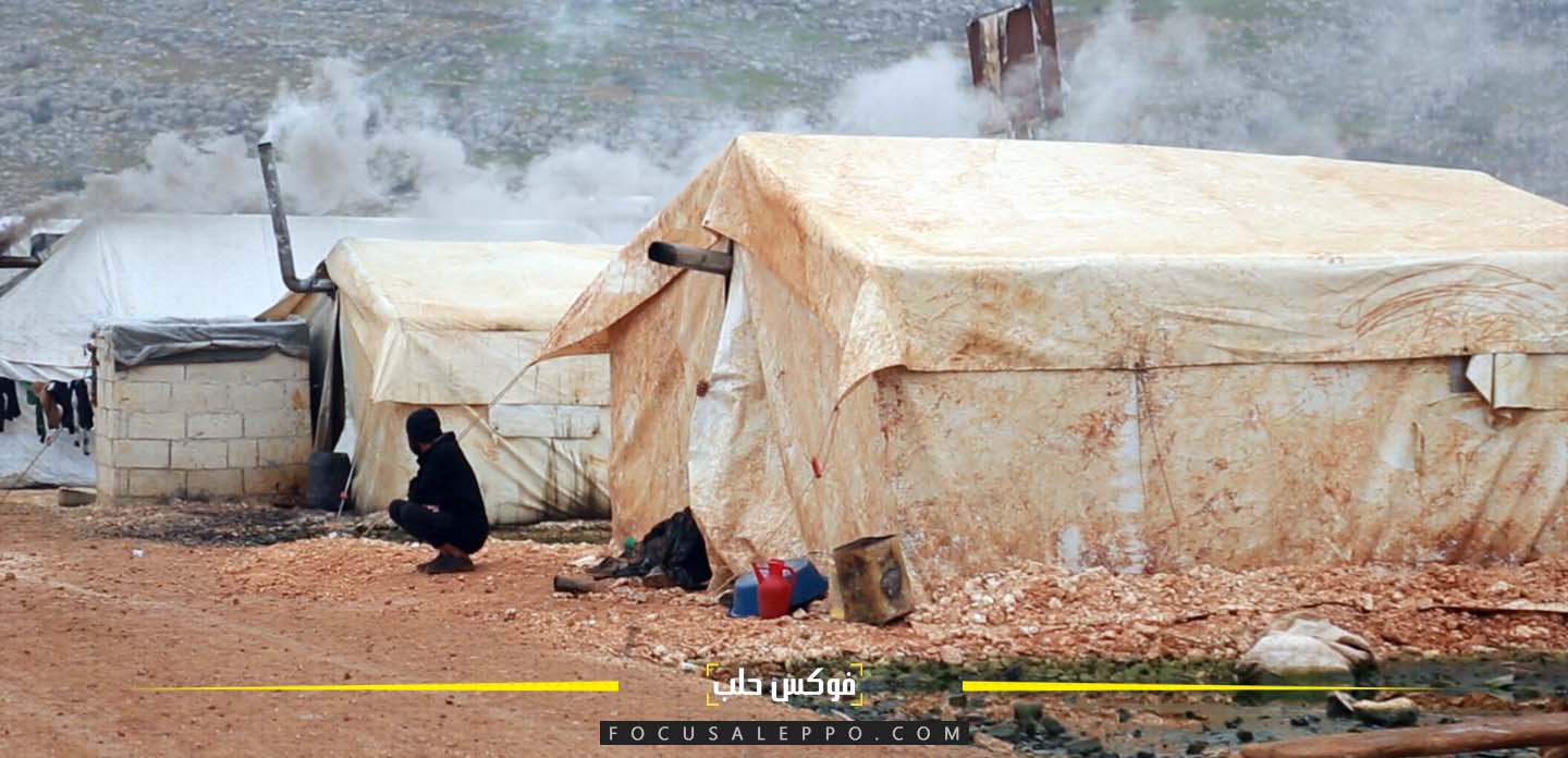 يمتد على جانبي مخيم “جبل الزاوية” قرب سرمدا طريق طيني موحل، تعلوه هالة من الدخان، تبلغ ذروتها بعد العصر، حيث لا مهرب من البرد إلا بإشعال المدافئ.