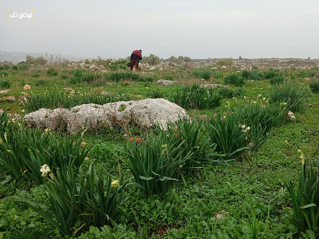 يتنقل السبعيني أبو جمعة الزهري بين صفوف النرجس المزروعة بعناية على مساحة عشرة دونمات من أرضه الزراعية في مدينة دارة عزة بريف حلب الغربي. يتفحص بصيلاتها واحدة تلو الأخرى بعين الخبير. إلى جانبه زوجته، الحجة أم جمعة، تحمل بين يديها خبرة الجدات في رعاية هذه الزهور العطرة.