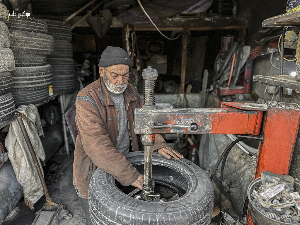 تلتصق مهنته “الكومجي” باسمه، منذ أزيد من 45 عاماً، أبو محمود الكومجي أشهر (مصلحي الإطارات) في حلب الغربية. الابتسامة صفة أخرى لا تفارق وجهه أيضاً أيّاً كانت الظروف، شعاره في حياته حكمة صدّر بها محله في سوق الخالدية “الحلم سيد الأخلاق”.