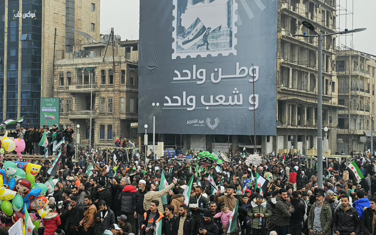 الوصول إلى ساحة سعد الله الجابري بحلب، حملُ علم الثورة في الأيدي ولفّه على الرقبة والأكتاف، اختيار الطرق الرئيسة لا الفرعية، عدم التلفّت يمنة ويسرة، اللون الوردي للوجوه التي تمرّ أمامك، الابتسامة، الصوت العالي لنقاشات علنية، حرية المشي على شكل جماعات لا أفراد.. تلك ملامح تغييرنا ونحن نسير بعد عام على سقوط نظام الأسد.