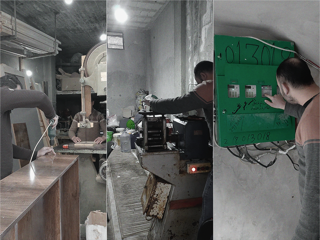 في بلدة أرمناز غربي إدلب، يقول أحمد اليحيى “أبو علي”، المهجّر من ريف إدلب الجنوبي وصاحب ورشة لتفصيل “المجالس والستائر”، “كنت أبني آمالًا على ازدياد الطلب نتيجة الانفتاح على باقي المحافظات، إلا أن التقنين حال دون قدرتي على إنجاز طلبيتين أسبوعياً، كما كنت سابقًا”. يخبرنا أبو علي أن الانقطاع المتكرر للكهرباء، الذي يمتد بين أربع وست ساعات يوميًا، خفّض قدرته الإنتاجية إلى طلبية واحدة.