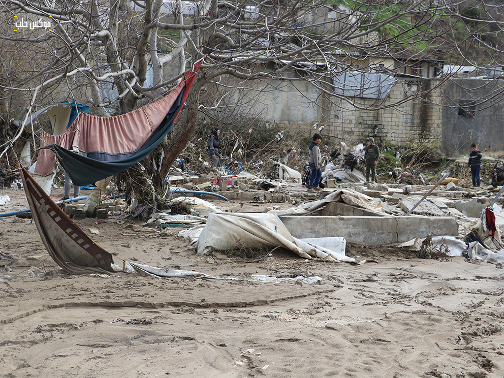 ألحقت السيول والفيضانات أضراراً بمخيمات النازحين في منطقة خربة الجوز بريف جسر الشغور غربي إدلب، عقب فيضان نهر العاصي نتيجة الهطولات المطرية الغزيرة، يوم أمس السبت.